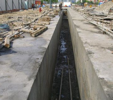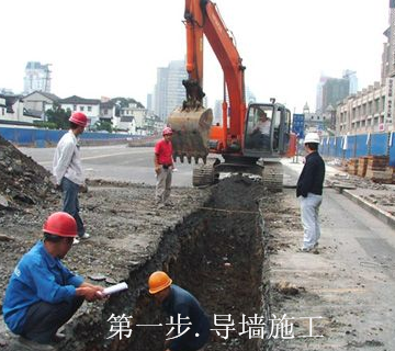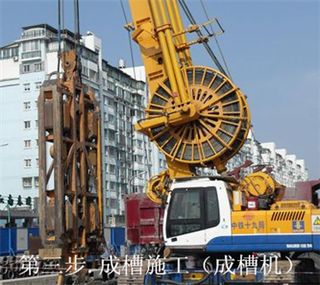 在地面上,利用一些種挖槽機(jī)械,借助于泥漿的護(hù)壁作用,在地下挖出窄而深的基槽,并在其內(nèi)澆注適當(dāng)?shù)牟牧隙纬傻囊坏谰哂蟹罎B、擋土和承重功能的連續(xù)的地下墻體